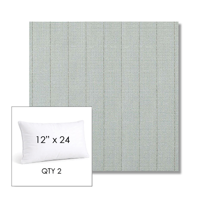 Custom 12" x 24" Lumbar Pillow SET OF TWO, square outdoor pillows available in over 700 Sunbrella® fabrics. Choose piping or knife-edge finish with optional covered button detail. Each pillow includes a zipper opening and premium outdoor insert for comfort, durability, and long-lasting outdoor performance.