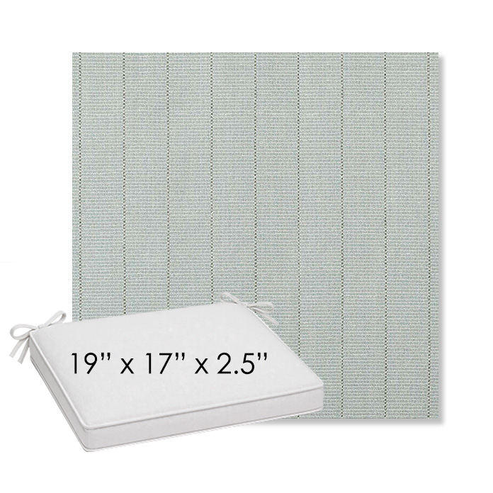 19" x 17" x 2.5" Thick outdoor dining chair seat cushion designed for a simple, ready-to-order fit. Features a boxed construction with piping, fabric ties, and zipper opening. Made in 700+ Sunbrella® fabrics for long-lasting outdoor performance.