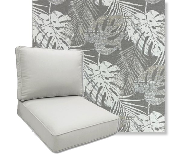 Our Easy order deep seating replacement cushion come in 4 common sizes and in beautiful outfoor printed polyester fabrics from Richloom Solarium..