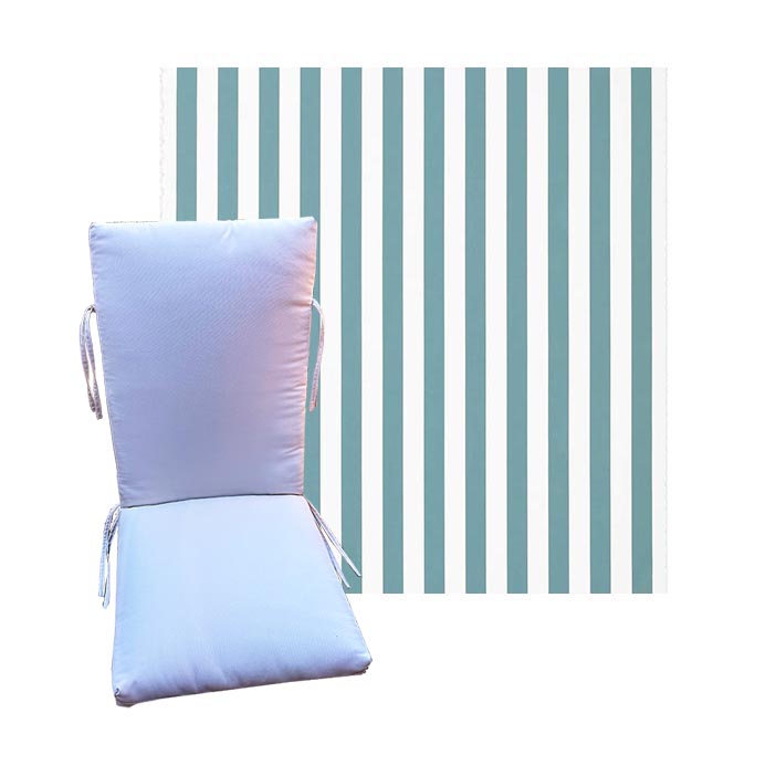 Order universal patio chair cushions in Outdura Outdoor Fabrics - Find a new colorful replacement cushion in 9 sizes - This style of patio chair cushion features a center seam, hinged design with fabric ties. These outdoor cushions are custom made to order in the fabric and size you need. See details on available sizes in the overview section below. BUY MORE and save.