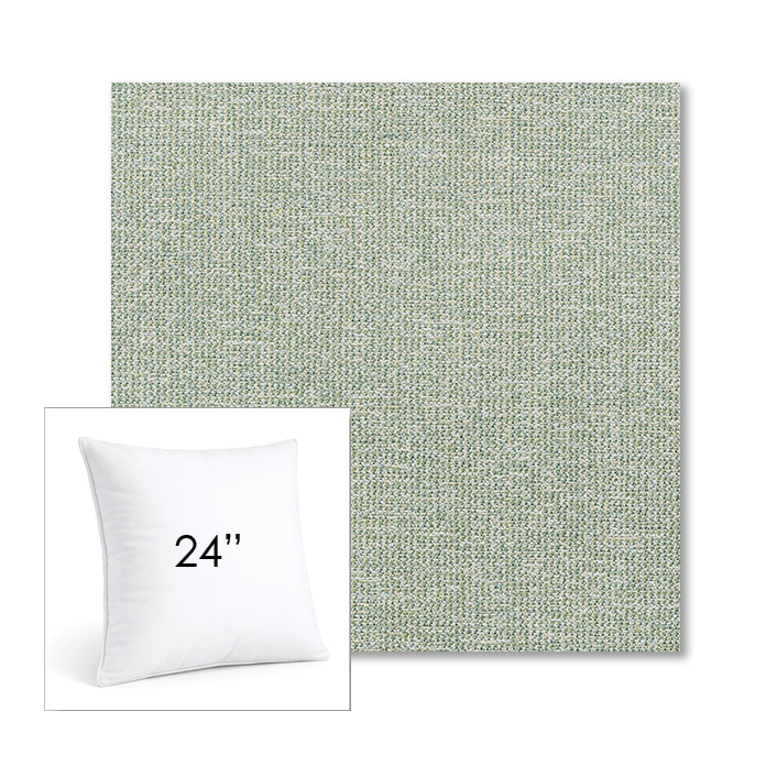 Custom 24" square outdoor pillows available in over 700 Sunbrella® fabrics. Choose piping or knife-edge finish with optional covered button detail. Each pillow includes a zipper opening and premium outdoor insert for comfort, durability, and long-lasting outdoor performance.