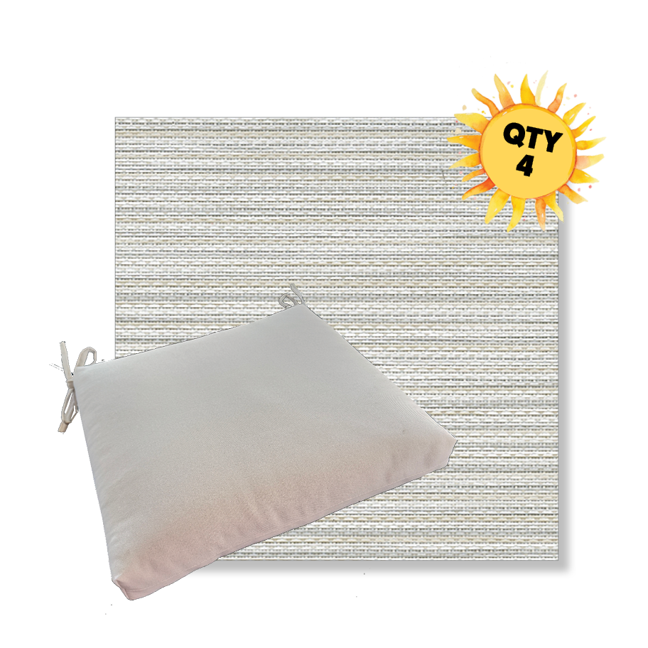 Each cushion is available in 4 universal sizes so you can choose the best fit for your existing outdoor dining furniture. A generous set of fabric ties keeps the cushion securely in place, even when people shift and move during meals. The interior features a combination of outdoor-rated foam and plush polyester fiber, creating a seat that feels soft yet supportive and holds its shape over time.