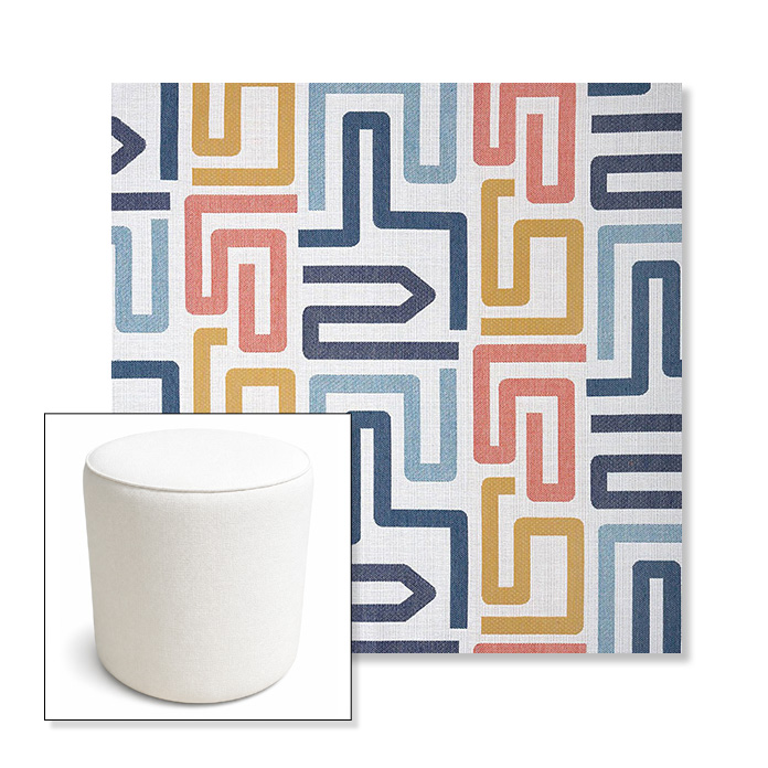 Labyrinth Fiesta | 16" Round x 18" Tall Outdoor Pouf or Ottoman | Sunbrella Fabrics