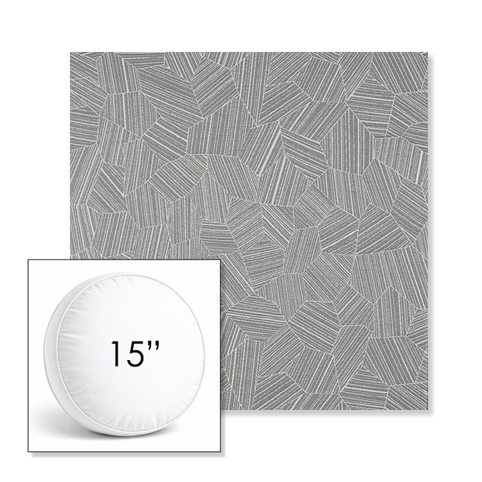 Custom 15" Round Boxed Sunbrella® Outdoor Pillow (3" Thick) available in over 700 Sunbrella® fabrics. Comes standard with piping. Optional covered button detail. Each pillow includes a zipper opening and premium outdoor insert for comfort, durability, and long-lasting outdoor performance.