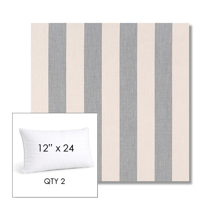 Custom 12" x 24" Lumbar Pillow SET OF TWO, square outdoor pillows available in over 700 Sunbrella® fabrics. Choose piping or knife-edge finish with optional covered button detail. Each pillow includes a zipper opening and premium outdoor insert for comfort, durability, and long-lasting outdoor performance.