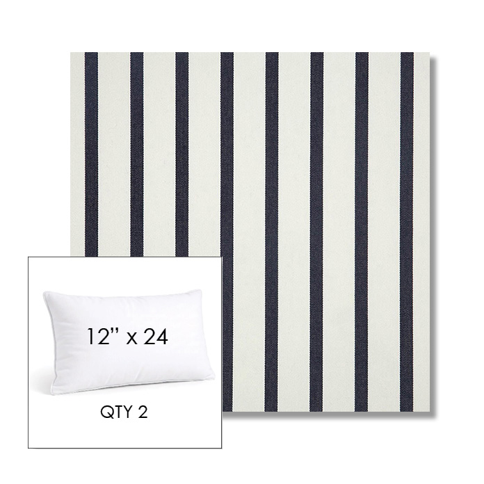 Custom 12" x 24" Lumbar Pillow SET OF TWO, square outdoor pillows available in over 700 Sunbrella® fabrics. Choose piping or knife-edge finish with optional covered button detail. Each pillow includes a zipper opening and premium outdoor insert for comfort, durability, and long-lasting outdoor performance.