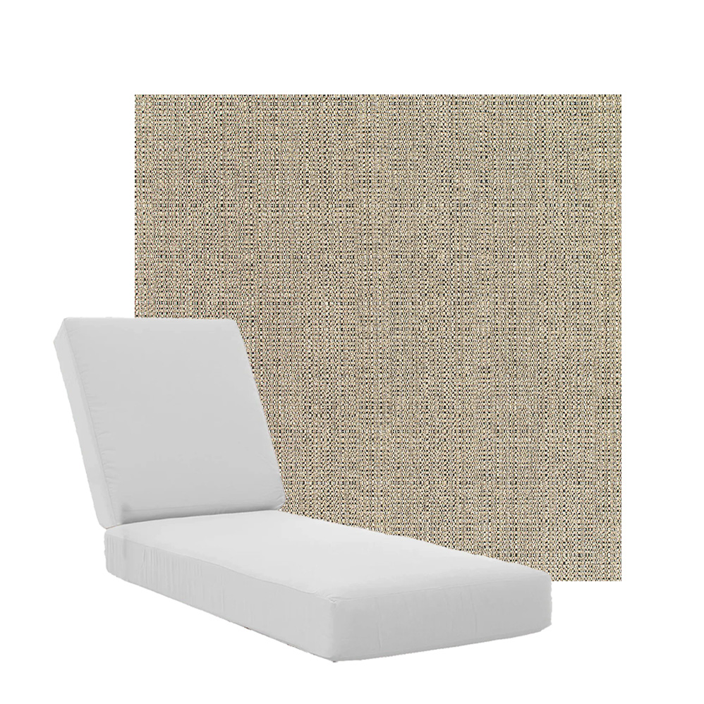 Boxed Chaise Lounge Cushions in Sunbrella Fabrics. Separate Seat and Back Cushions. Available in 3 sizes to fit a variety of outdoor furniture styles. Our boxed Chaise Lounge Cushions feature foam and fiber, piping and zipper openings. All chaise lounge replacement cushions are custom made to order in your choice of fabric and size. Made in the USA. Lead times may vary depending on the time of year.