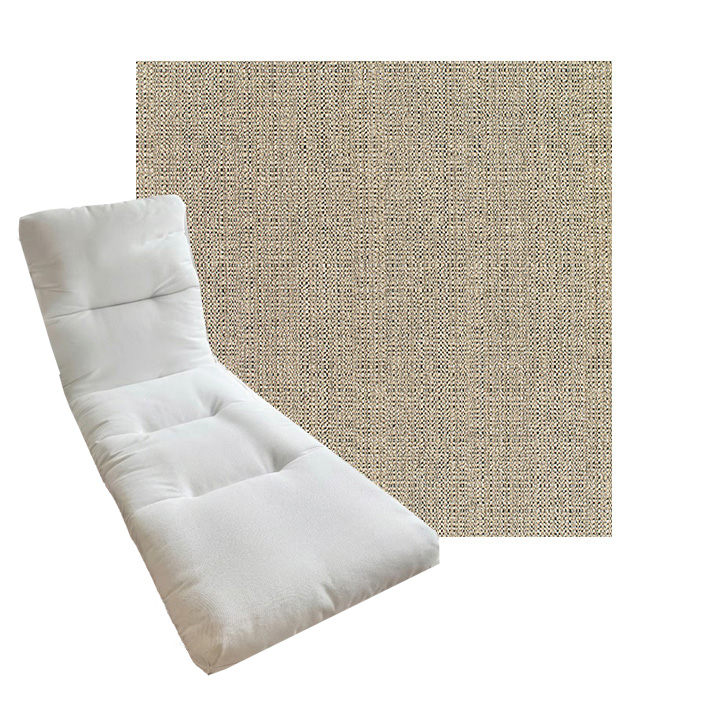 Tufted Style Chaise Lounge Cushion. Universal Chaise Lounge Replacement Cushions in 3 common sizes. Simple center seam design. No piping. Designed to accommodate aluminum, wood, and PVC furniture. Includes fabric ties at back and hinge. Polyester/densified fiber fill.