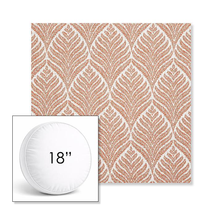 Custom 18" Round Boxed Sunbrella® Outdoor Pillow (3" Thick) available in over 700 Sunbrella® fabrics. Comes standard with piping. Optional covered button detail. Each pillow includes a zipper opening and premium outdoor insert for comfort, durability, and long-lasting outdoor performance.