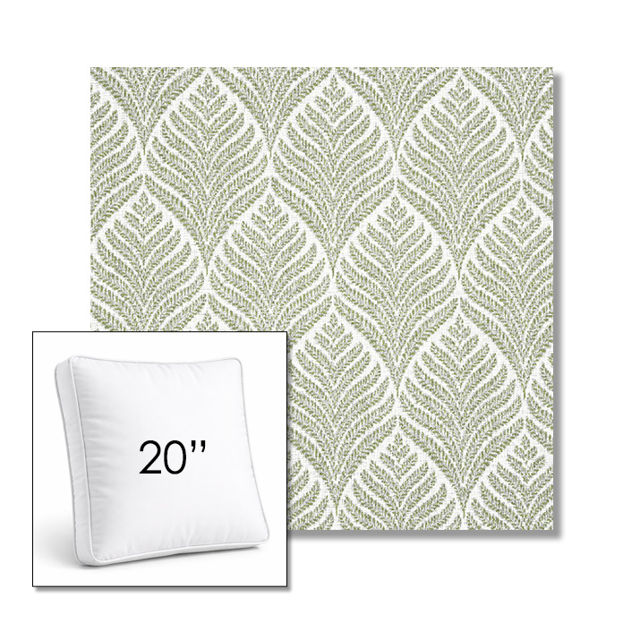 Custom 20" Square Boxed Sunbrella® Outdoor Pillow (3" Thick) available in over 700 Sunbrella® fabrics. Comes standard with piping. Optional covered button detail. Each pillow includes a zipper opening and premium outdoor insert for comfort, durability, and long-lasting outdoor performance.