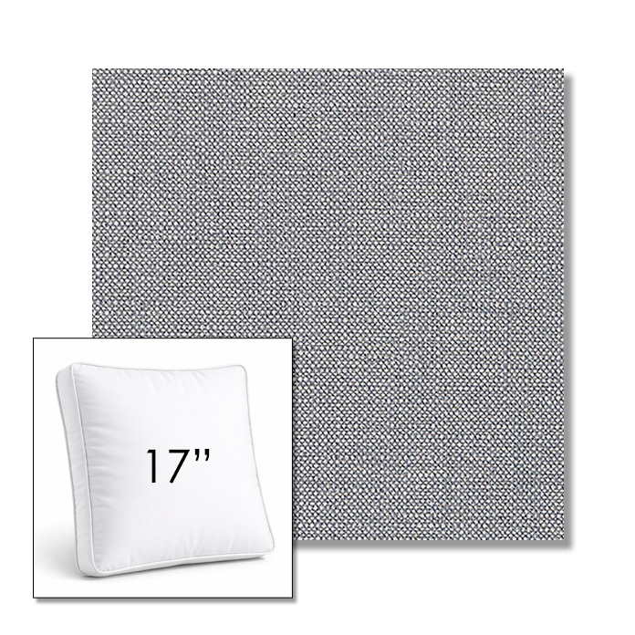 Custom 17" Square Boxed Sunbrella® Outdoor Pillow (3" Thick) available in over 700 Sunbrella® fabrics. Comes standard with piping. Optional covered button detail. Each pillow includes a zipper opening and premium outdoor insert for comfort, durability, and long-lasting outdoor performance.
