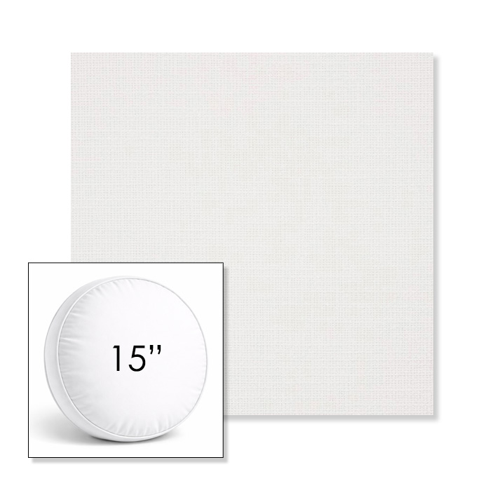 Custom 15" Round Boxed Sunbrella® Outdoor Pillow (3" Thick) available in over 700 Sunbrella® fabrics. Comes standard with piping. Optional covered button detail. Each pillow includes a zipper opening and premium outdoor insert for comfort, durability, and long-lasting outdoor performance.