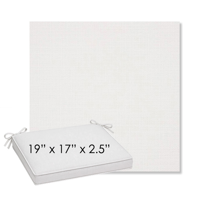 19" x 17" x 2.5" Thick outdoor dining chair seat cushion designed for a simple, ready-to-order fit. Features a boxed construction with piping, fabric ties, and zipper opening. Made in 700+ Sunbrella® fabrics for long-lasting outdoor performance.