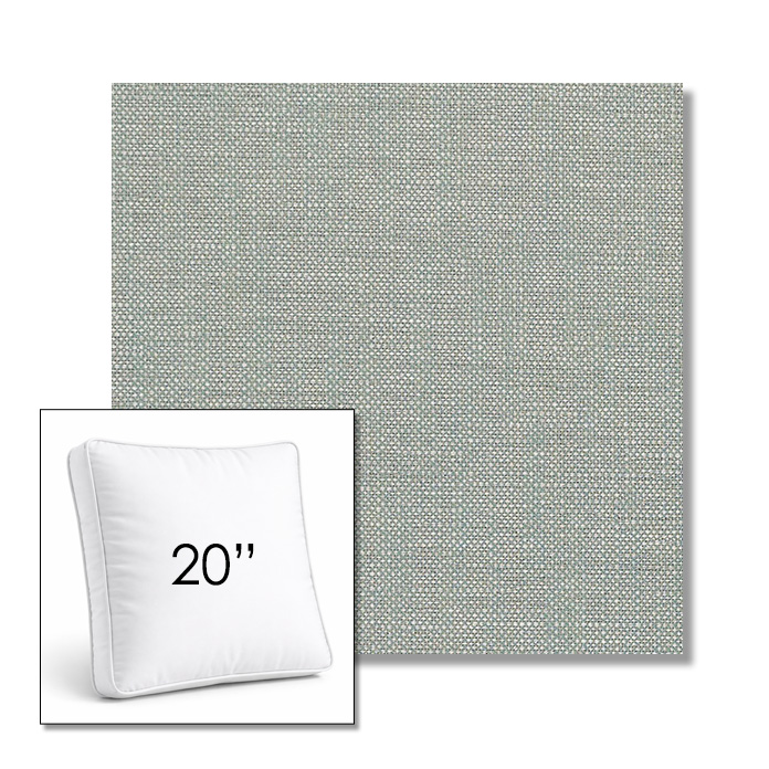 Custom 20" Square Boxed Sunbrella® Outdoor Pillow (3" Thick) available in over 700 Sunbrella® fabrics. Comes standard with piping. Optional covered button detail. Each pillow includes a zipper opening and premium outdoor insert for comfort, durability, and long-lasting outdoor performance.