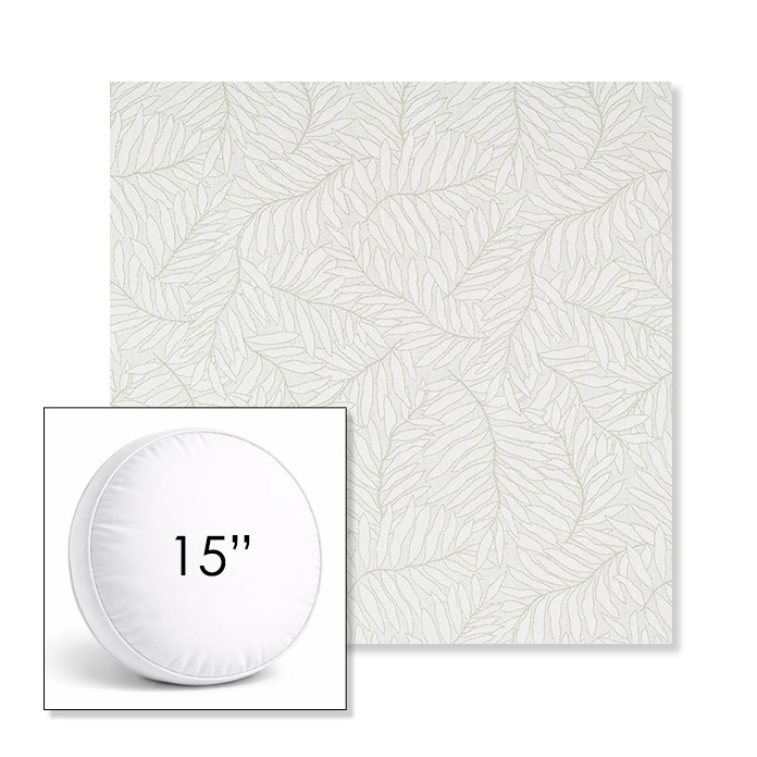 Custom 15" Round Boxed Sunbrella® Outdoor Pillow (3" Thick) available in over 700 Sunbrella® fabrics. Comes standard with piping. Optional covered button detail. Each pillow includes a zipper opening and premium outdoor insert for comfort, durability, and long-lasting outdoor performance.