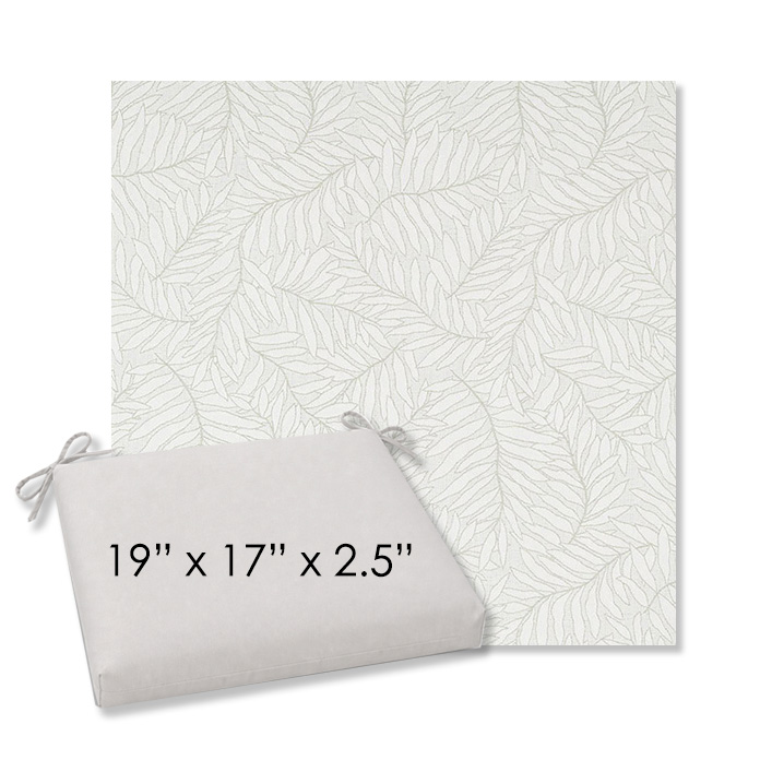 19" x 17" x 2.5" Thick - Universal outdoor dining chair seat cushion in Sunbrella Solution Dyed Polyester Outdoor Fabrics. Features with generous fabric ties and outdoor foam with polyester fiber fill—perfect for most patio dining chairs. Each Outdoor Patio Dining Chair Cushion is a center seam design and 2.5" Thick. All patio dining chair cushions are custom made to order in the size and fabric of your choice.