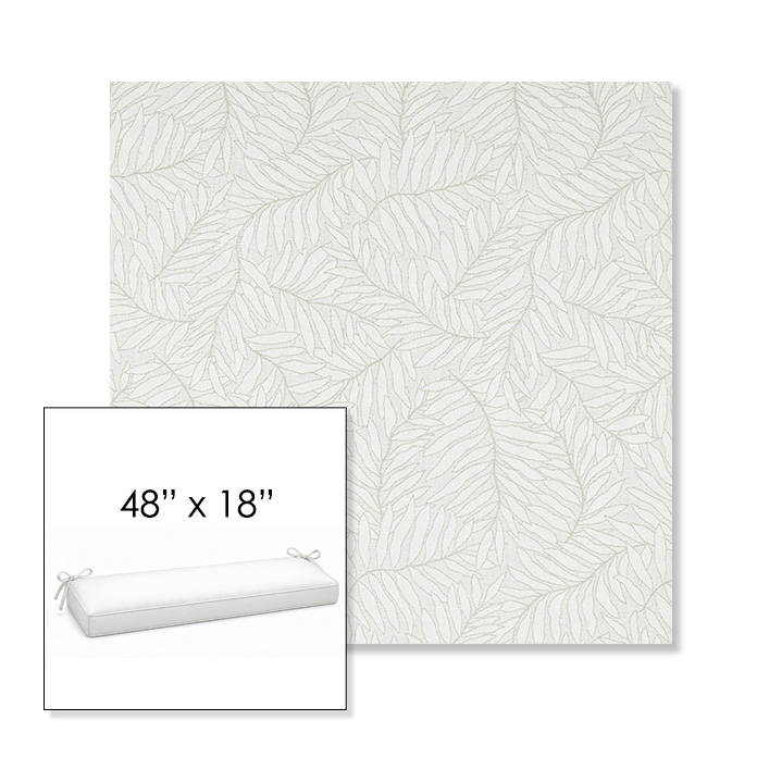 48" outdoor bench cushion designed for a simple, ready-to-order fit. Features a boxed construction with piping, fabric ties, and zipper opening. Made in 700+ Sunbrella® fabrics for long-lasting outdoor performance.