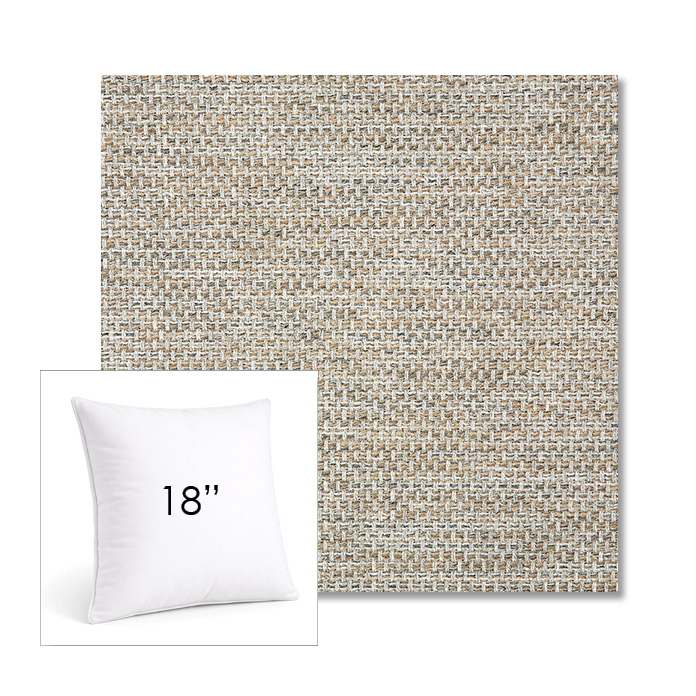 Custom 18" square outdoor pillows available in over 700 Sunbrella® fabrics. Choose piping or knife-edge finish with optional covered button detail. Each pillow includes a zipper opening and premium outdoor insert for comfort, durability, and long-lasting outdoor performance.