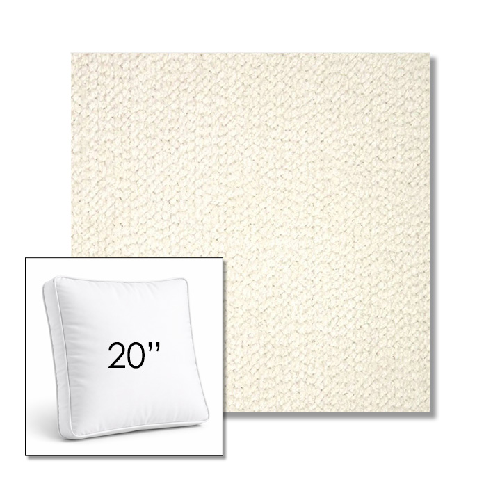 Custom 20" Square Boxed Sunbrella® Outdoor Pillow (3" Thick) available in over 700 Sunbrella® fabrics. Comes standard with piping. Optional covered button detail. Each pillow includes a zipper opening and premium outdoor insert for comfort, durability, and long-lasting outdoor performance.