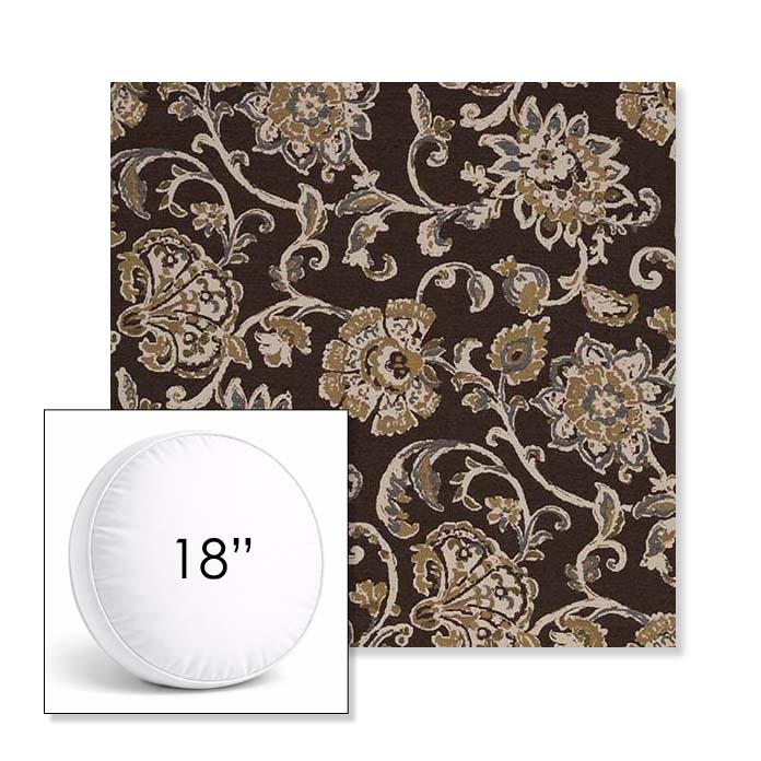 Custom 18" Round Boxed Sunbrella® Outdoor Pillow (3" Thick) available in over 700 Sunbrella® fabrics. Comes standard with piping. Optional covered button detail. Each pillow includes a zipper opening and premium outdoor insert for comfort, durability, and long-lasting outdoor performance.