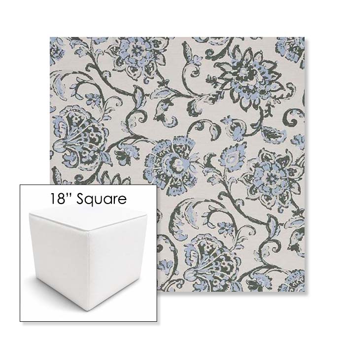 Martha Floral Periwinkle | 18" Square Outdoor Pouf or Ottoman | Sunbrella Fabrics
