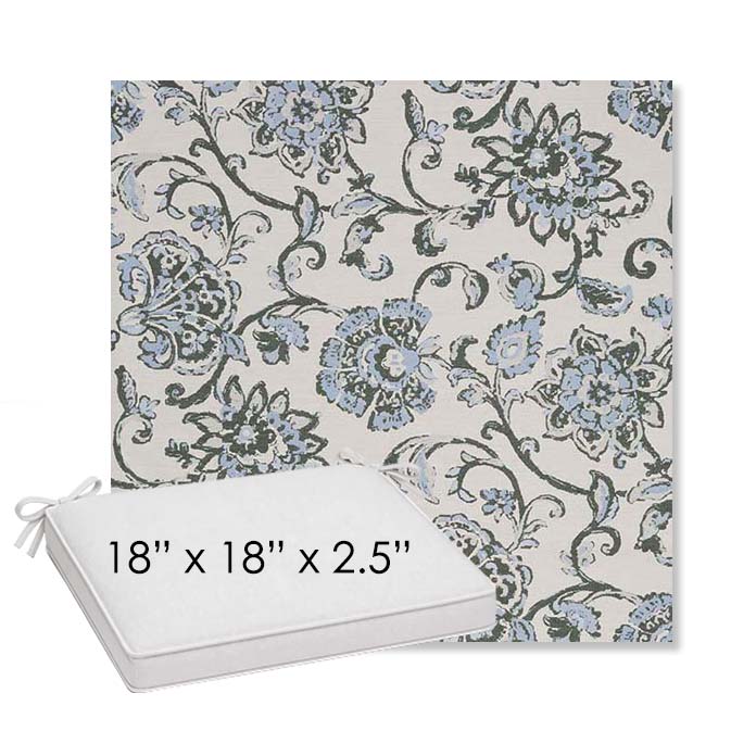 Martha Floral Periwinkle | Sunbrella® 18" x 18" Outdoor Dining Cushion