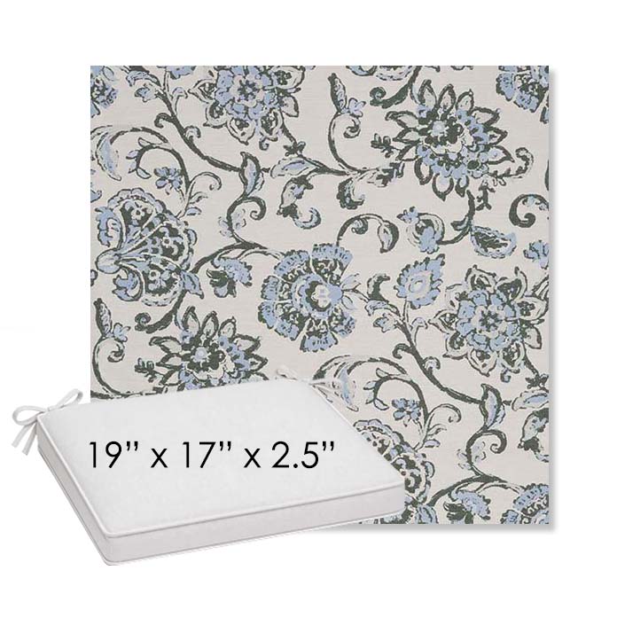 Martha Floral Periwinkle | Sunbrella® 19" x 17" Outdoor Dining Cushion