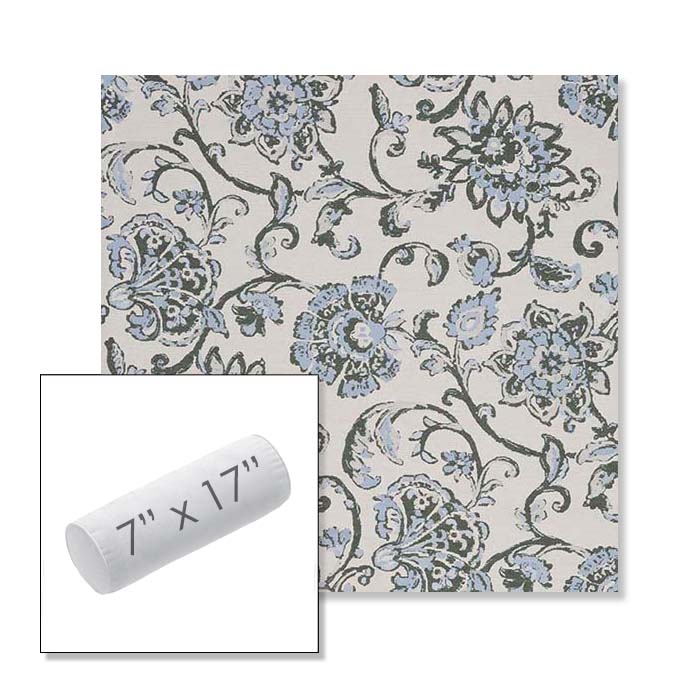 Martha Floral Periwinkle | 7" x 17" Outdoor Bolster Pillow Sunbrella® Fabric