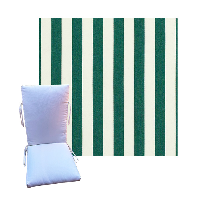 Order universal patio chair cushions in Sunbrella Outdoor Fabrics - Find a new colorful replacement cushion in 9 sizes - This style of patio chair cushion features a center seam, hinged design with fabric ties. These outdoor cushions are custom made to order in the fabric and size you need.