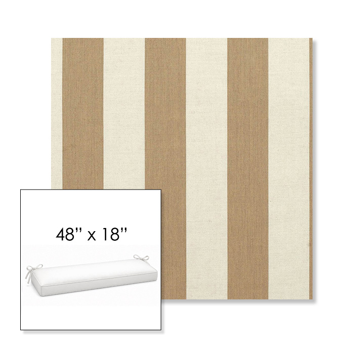 48" outdoor bench cushion designed for a simple, ready-to-order fit. Features a boxed construction with piping, fabric ties, and zipper opening. Made in 700+ Sunbrella® fabrics for long-lasting outdoor performance.