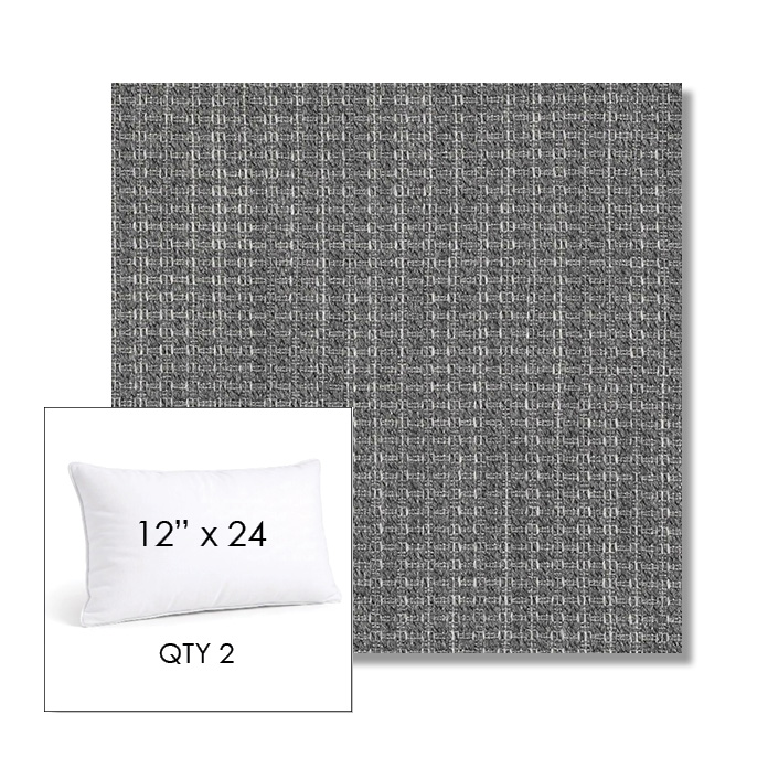 Custom 12" x 24" Lumbar Pillow SET OF TWO, square outdoor pillows available in over 700 Sunbrella® fabrics. Choose piping or knife-edge finish with optional covered button detail. Each pillow includes a zipper opening and premium outdoor insert for comfort, durability, and long-lasting outdoor performance.