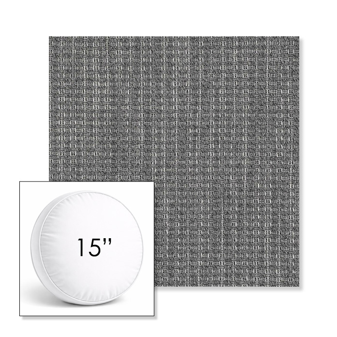 Custom 15" Round Boxed Sunbrella® Outdoor Pillow (3" Thick) available in over 700 Sunbrella® fabrics. Comes standard with piping. Optional covered button detail. Each pillow includes a zipper opening and premium outdoor insert for comfort, durability, and long-lasting outdoor performance.