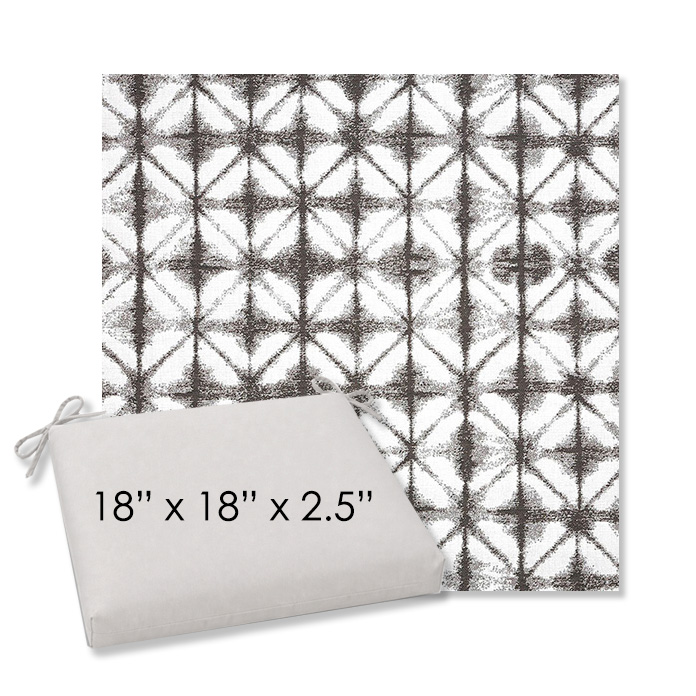 18" x 18" x 2.5" Thick - Universal outdoor dining chair seat cushion in Sunbrella Solution Dyed Polyester Outdoor Fabrics. Features with generous fabric ties and outdoor foam with polyester fiber fill—perfect for most patio dining chairs. Each Outdoor Patio Dining Chair Cushion is a center seam design and 2.5" Thick. All patio dining chair cushions are custom made to order in the size and fabric of your choice.