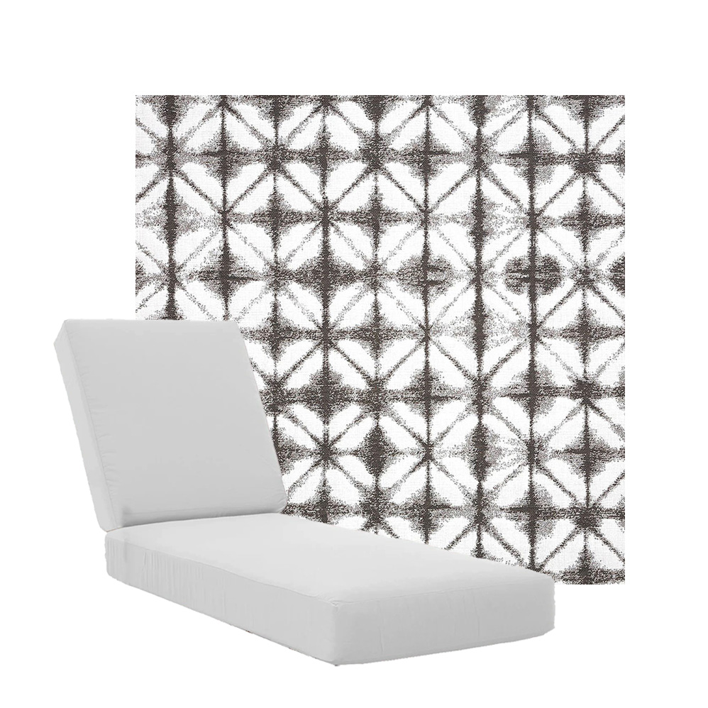 Boxed Chaise Lounge Cushions in Sunbrella Fabrics. Separate Seat and Back Cushions. Available in 3 sizes to fit a variety of outdoor furniture styles. Our boxed Chaise Lounge Cushions feature foam and fiber, piping and zipper openings. All chaise lounge replacement cushions are custom made to order in your choice of fabric and size. Made in the USA. Lead times may vary depending on the time of year.