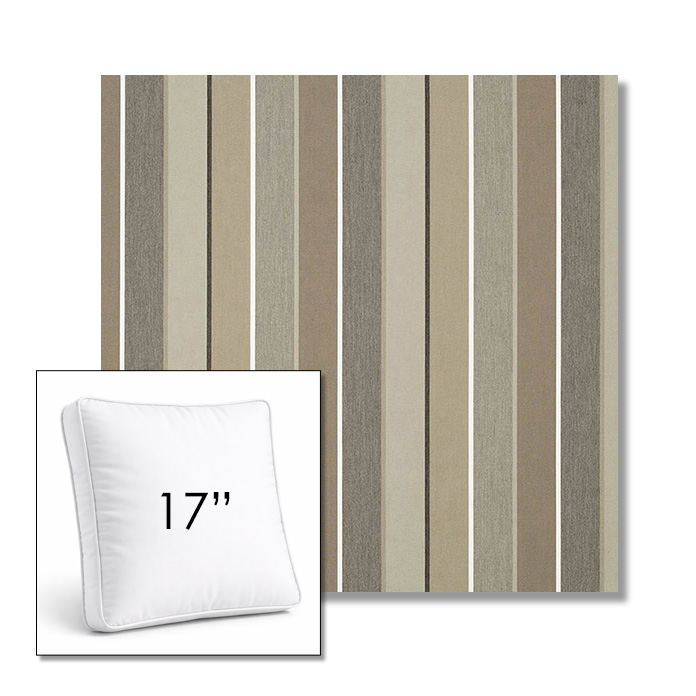 Custom 17" Square Boxed Sunbrella® Outdoor Pillow (3" Thick) available in over 700 Sunbrella® fabrics. Comes standard with piping. Optional covered button detail. Each pillow includes a zipper opening and premium outdoor insert for comfort, durability, and long-lasting outdoor performance.