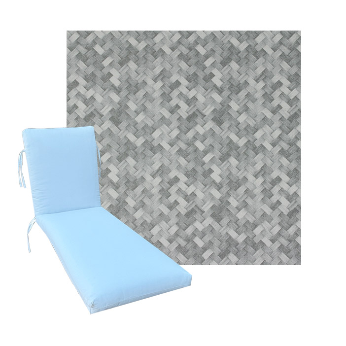 Classic Style Chaise Lounge Cushion. Premium Universal Chaise Lounge Replacement Cushions in 3 common sizes. Simple center seam design. No piping. Designed to accommodate aluminum, wood, and PVC furniture. Includes fabric ties at back and hinge. Polyester/densified fiber fill.