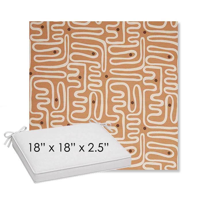 18" x 18" x 2.5" Thick outdoor dining chair seat cushion designed for a simple, ready-to-order fit. Features a boxed construction with piping, fabric ties, and zipper opening. Made in 700+ Sunbrella® fabrics for long-lasting outdoor performance.