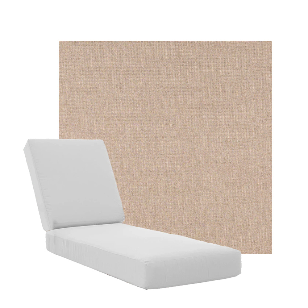 Boxed Chaise Lounge Cushions in Sunbrella Fabrics. Separate Seat and Back Cushions. Available in 3 sizes to fit a variety of outdoor furniture styles. Our boxed Chaise Lounge Cushions feature foam and fiber, piping and zipper openings. All chaise lounge replacement cushions are custom made to order in your choice of fabric and size. Made in the USA. Lead times may vary depending on the time of year.