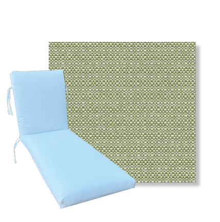 Classic Style Chaise Lounge Cushion. Premium Universal Chaise Lounge Replacement Cushions in 3 common sizes. Simple center seam design. No piping. Designed to accommodate aluminum, wood, and PVC furniture. Includes fabric ties at back and hinge. Polyester/densified fiber fill.