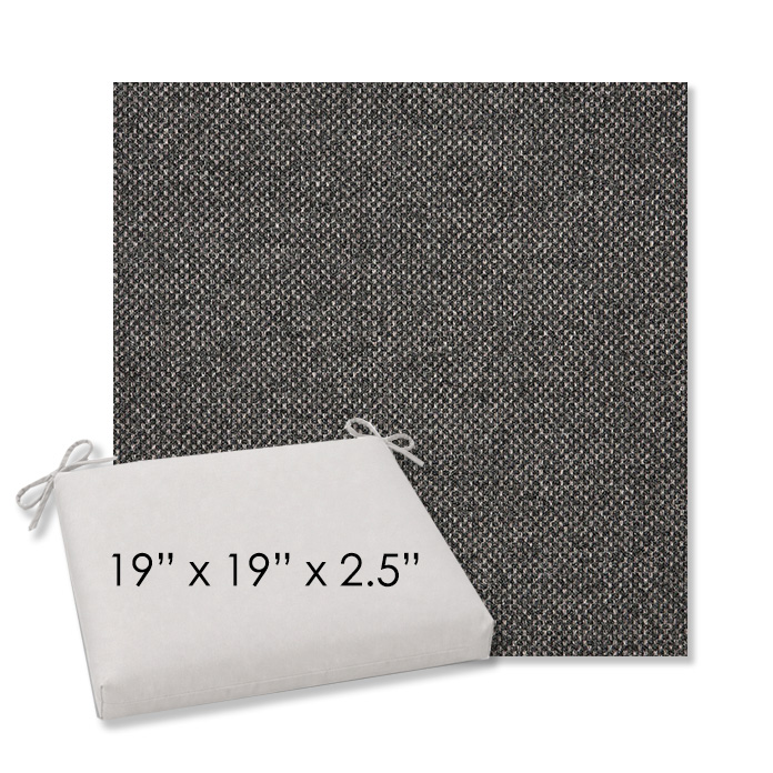 19" x 19" x 2.5" Thick - Universal outdoor dining chair seat cushion in Sunbrella Solution Dyed Polyester Outdoor Fabrics. Features with generous fabric ties and outdoor foam with polyester fiber fill—perfect for most patio dining chairs. Each Outdoor Patio Dining Chair Cushion is a center seam design and 2.5" Thick. All patio dining chair cushions are custom made to order in the size and fabric of your choice.