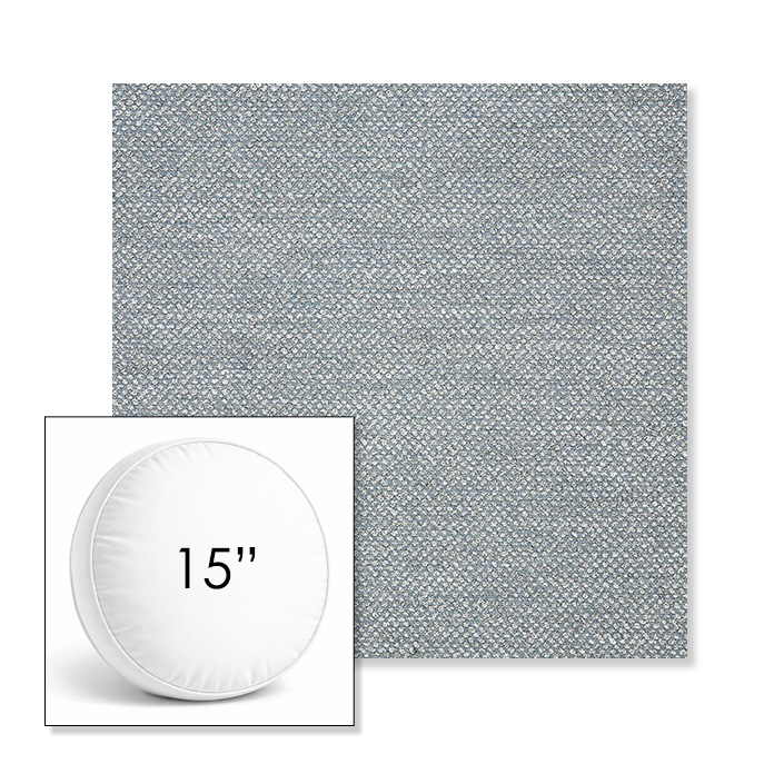 Custom 15" Round Boxed Sunbrella® Outdoor Pillow (3" Thick) available in over 700 Sunbrella® fabrics. Comes standard with piping. Optional covered button detail. Each pillow includes a zipper opening and premium outdoor insert for comfort, durability, and long-lasting outdoor performance.