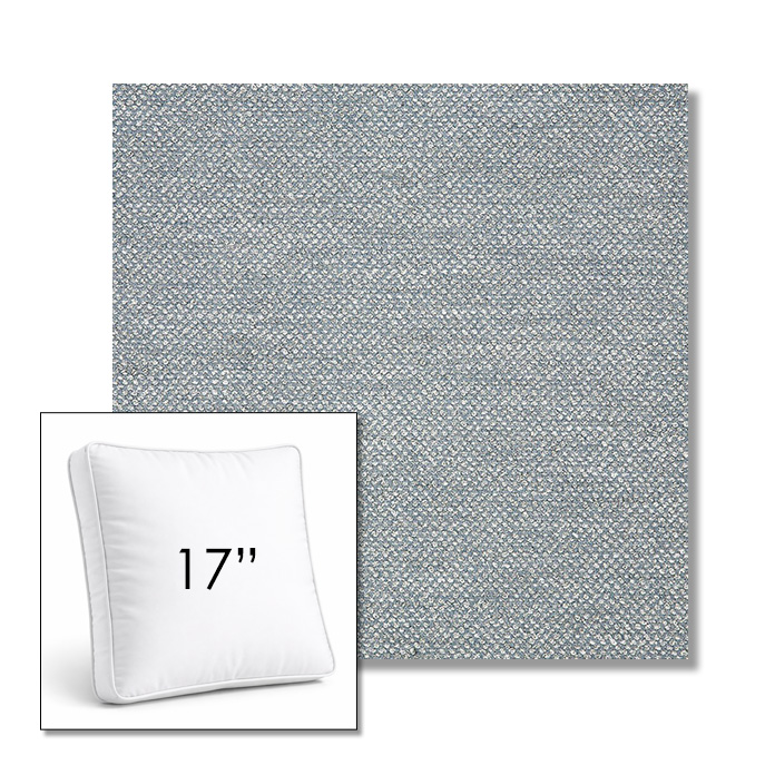 Custom 17" Square Boxed Sunbrella® Outdoor Pillow (3" Thick) available in over 700 Sunbrella® fabrics. Comes standard with piping. Optional covered button detail. Each pillow includes a zipper opening and premium outdoor insert for comfort, durability, and long-lasting outdoor performance.