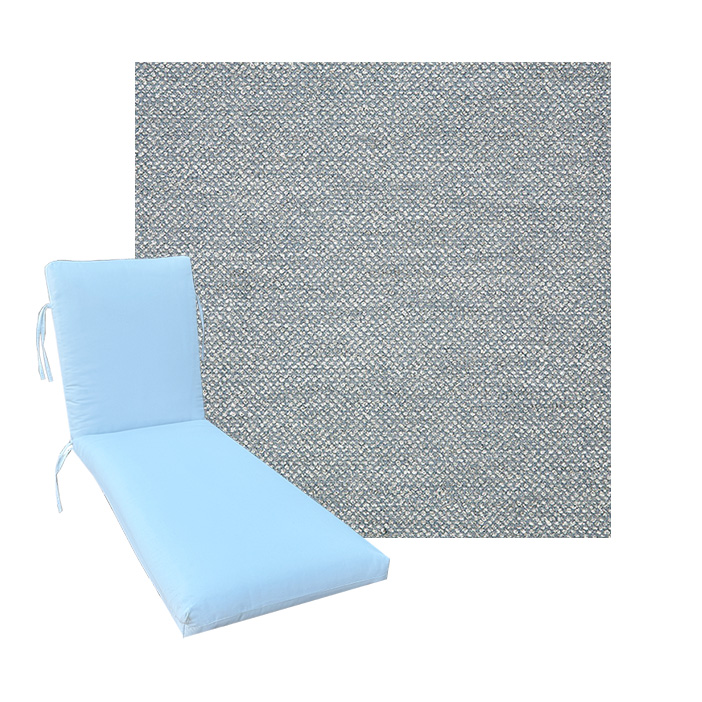 Classic Style Chaise Lounge Cushion. Premium Universal Chaise Lounge Replacement Cushions in 3 common sizes. Simple center seam design. No piping. Designed to accommodate aluminum, wood, and PVC furniture. Includes fabric ties at back and hinge. Polyester/densified fiber fill.