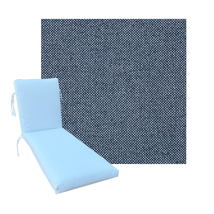 Classic Style Chaise Lounge Cushion. Premium Universal Chaise Lounge Replacement Cushions in 3 common sizes. Simple center seam design. No piping. Designed to accommodate aluminum, wood, and PVC furniture. Includes fabric ties at back and hinge. Polyester/densified fiber fill.