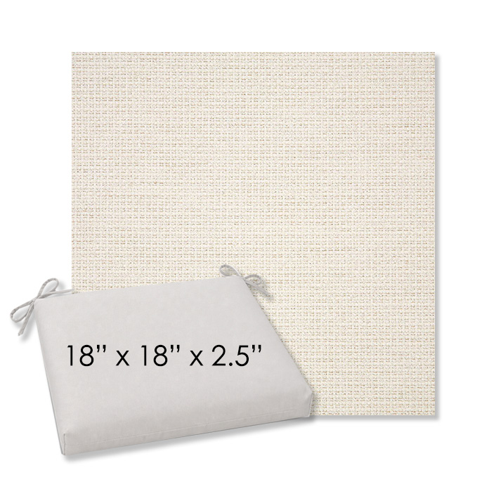 18" x 18" x 2.5" Thick - Universal outdoor dining chair seat cushion in Sunbrella Solution Dyed Polyester Outdoor Fabrics. Features with generous fabric ties and outdoor foam with polyester fiber fill—perfect for most patio dining chairs. Each Outdoor Patio Dining Chair Cushion is a center seam design and 2.5" Thick. All patio dining chair cushions are custom made to order in the size and fabric of your choice.