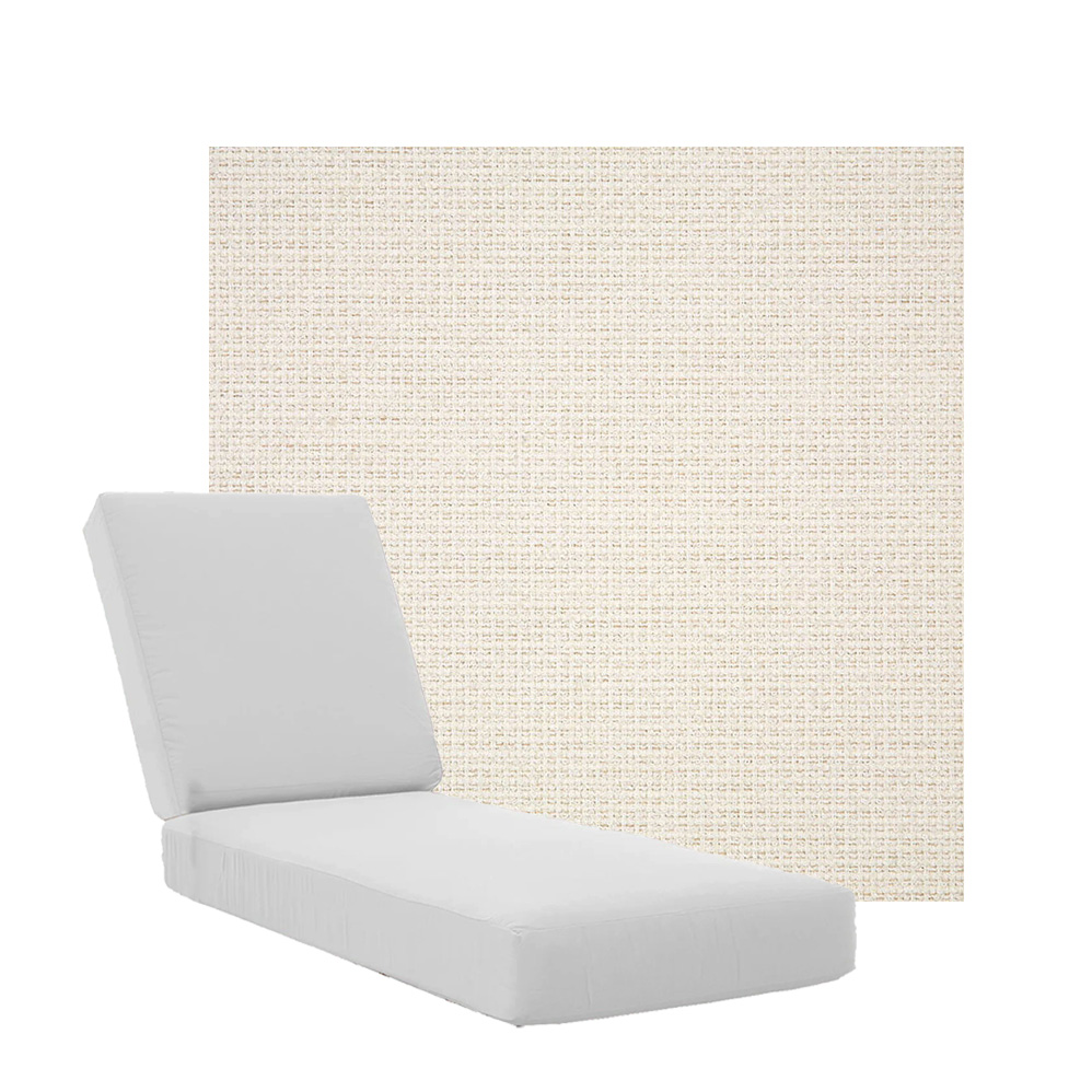 Boxed Chaise Lounge Cushions in Sunbrella Fabrics. Separate Seat and Back Cushions. Available in 3 sizes to fit a variety of outdoor furniture styles. Our boxed Chaise Lounge Cushions feature foam and fiber, piping and zipper openings. All chaise lounge replacement cushions are custom made to order in your choice of fabric and size. Made in the USA. Lead times may vary depending on the time of year.