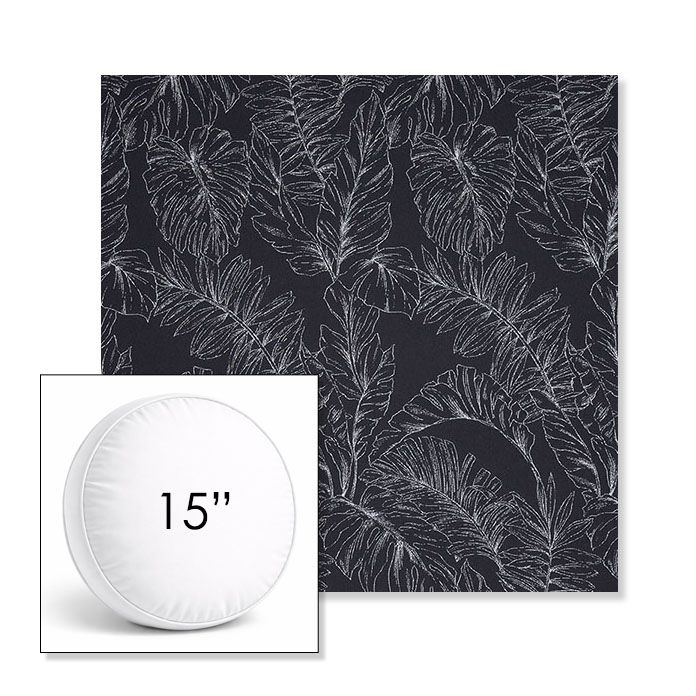 Custom 15" Round Boxed Sunbrella® Outdoor Pillow (3" Thick) available in over 700 Sunbrella® fabrics. Comes standard with piping. Optional covered button detail. Each pillow includes a zipper opening and premium outdoor insert for comfort, durability, and long-lasting outdoor performance.