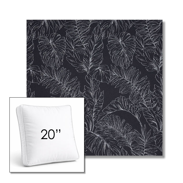 Custom 20" Square Boxed Sunbrella® Outdoor Pillow (3" Thick) available in over 700 Sunbrella® fabrics. Comes standard with piping. Optional covered button detail. Each pillow includes a zipper opening and premium outdoor insert for comfort, durability, and long-lasting outdoor performance.