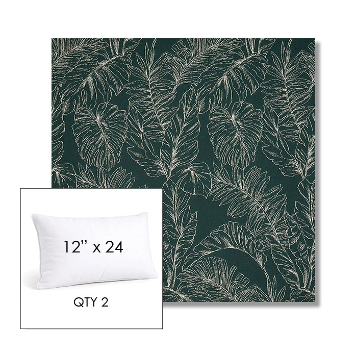 Custom 12" x 24" Lumbar Pillow SET OF TWO, square outdoor pillows available in over 700 Sunbrella® fabrics. Choose piping or knife-edge finish with optional covered button detail. Each pillow includes a zipper opening and premium outdoor insert for comfort, durability, and long-lasting outdoor performance.