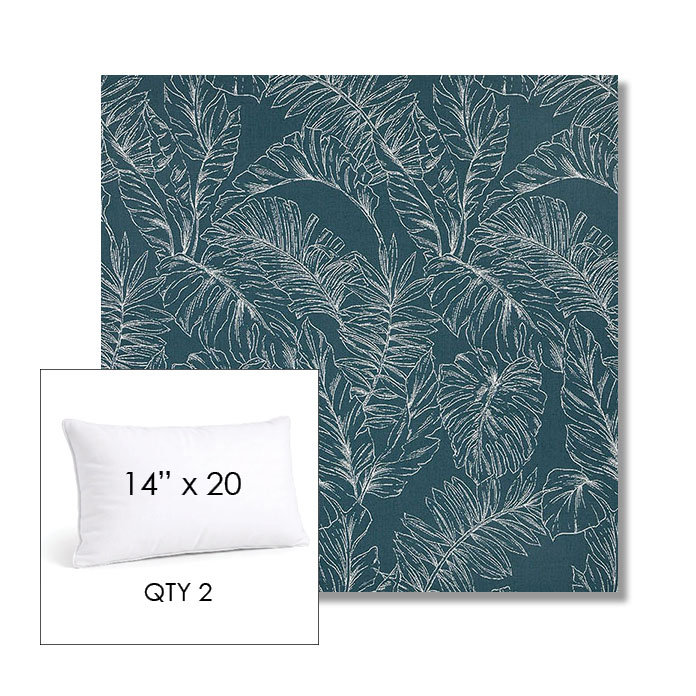Custom 14" x 20" Lumbar Pillows - SET OF 2 square outdoor pillows available in over 700 Sunbrella® fabrics. Choose piping or knife-edge finish with optional covered button detail. Each pillow includes a zipper opening and premium outdoor insert for comfort, durability, and long-lasting outdoor performance.